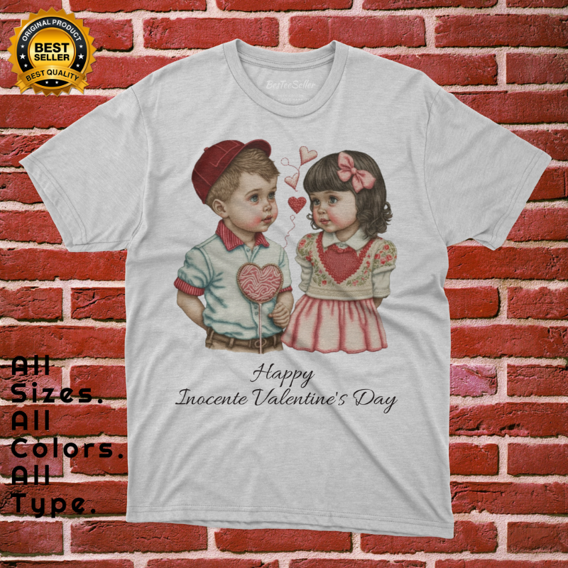 The "Happy Inocente Valentine's Day" t-shirt is a playful and light-hearted shirt that celebrates the humorous side of Valentine's Day. The shirt features the phrase "Happy Inocente Valentine's Day" written in bold letters with a graphic of a heart and an arrow. The phrase "Inocente" means innocent in Spanish, and adds a humorous twist to the traditional Valentine's Day message.
